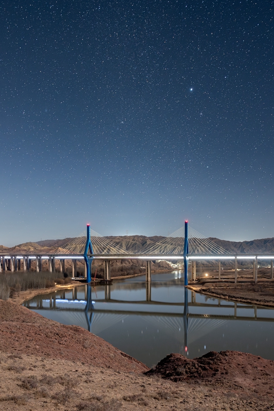 黑山峽黃河公路特大橋夜景。中交二航局供圖