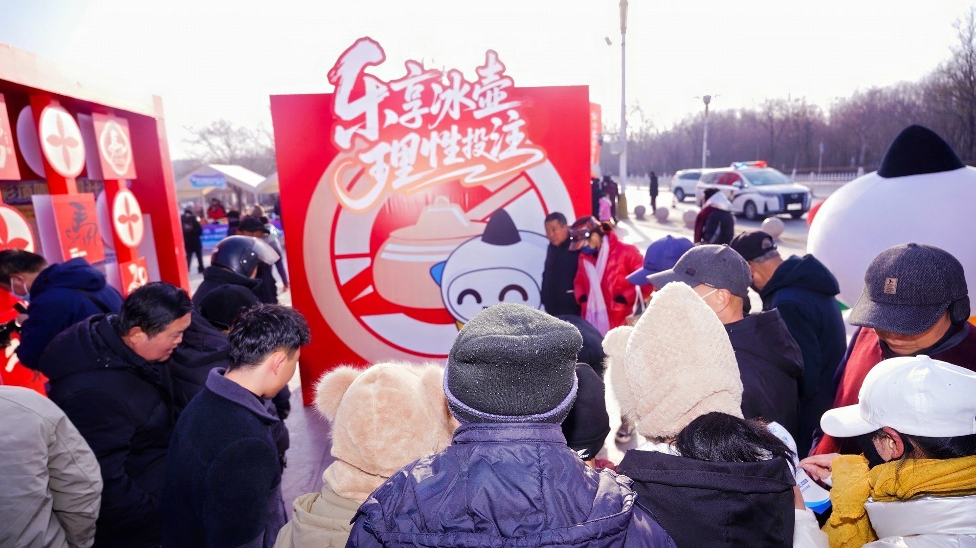 互動游戲區的隊伍排得最長,歡聲笑語裹著寒風響徹冰面。“樂享冰壺 理性投注”游戲裡,大家俯身調整力度,看著冰壺在冰面滑行,不知不覺就懂了“量力而行 精准取舍” 的理性真諦﹔傳統投壺變身“瞄准騙局 重箭出擊”,投出的雖是箭矢,傳遞的卻是滿滿的防騙底氣﹔“遠離圈套 赤馬迎新”套圈游戲更討喜,大人小孩踮腳套取好運之際,也將“遠離非法彩票”的提醒銘記於心。最熱鬧的還要數“謠言粉碎機”,大家親手撕毀購彩謠言卡片,那些模糊的認知瞬間變得清晰,大家玩得盡興,心裡也愈發踏實。