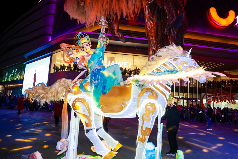 金鳳區在建發悠閱城打造的特色小年文旅活動,以“室內互動體驗+中庭儀式展演+室外沉浸演繹”三大核心板塊,構建起全場景、多層次的節慶體驗體系。室內民謠演唱、非遺剪紙走秀、魚燈巡游輪番上演,《鳳凰賀喜》歌舞表演為現場增添濃濃喜慶﹔室外西廣場的《獨佔鰲頭》鰲魚裝置巡游、《馬踏雲謠》機械天馬巡游震撼登場,敦煌飛天與馬年祥瑞交融,打鐵花表演火光漫天,盡顯傳統技藝之美。“好運加馬”市集裡,書法家現場贈福、非遺美食免費品鑒,50個標准展位打造年貨、非遺、文創三大主題消費區。活動現場,金鳳區同步發布2026年新春文旅系列活動及文旅消費券政策,消費券持續至3月31日,戲曲展演、少兒春晚、社火比賽等活動將貫穿整個新春,為市民游客送上持續的文旅福利。