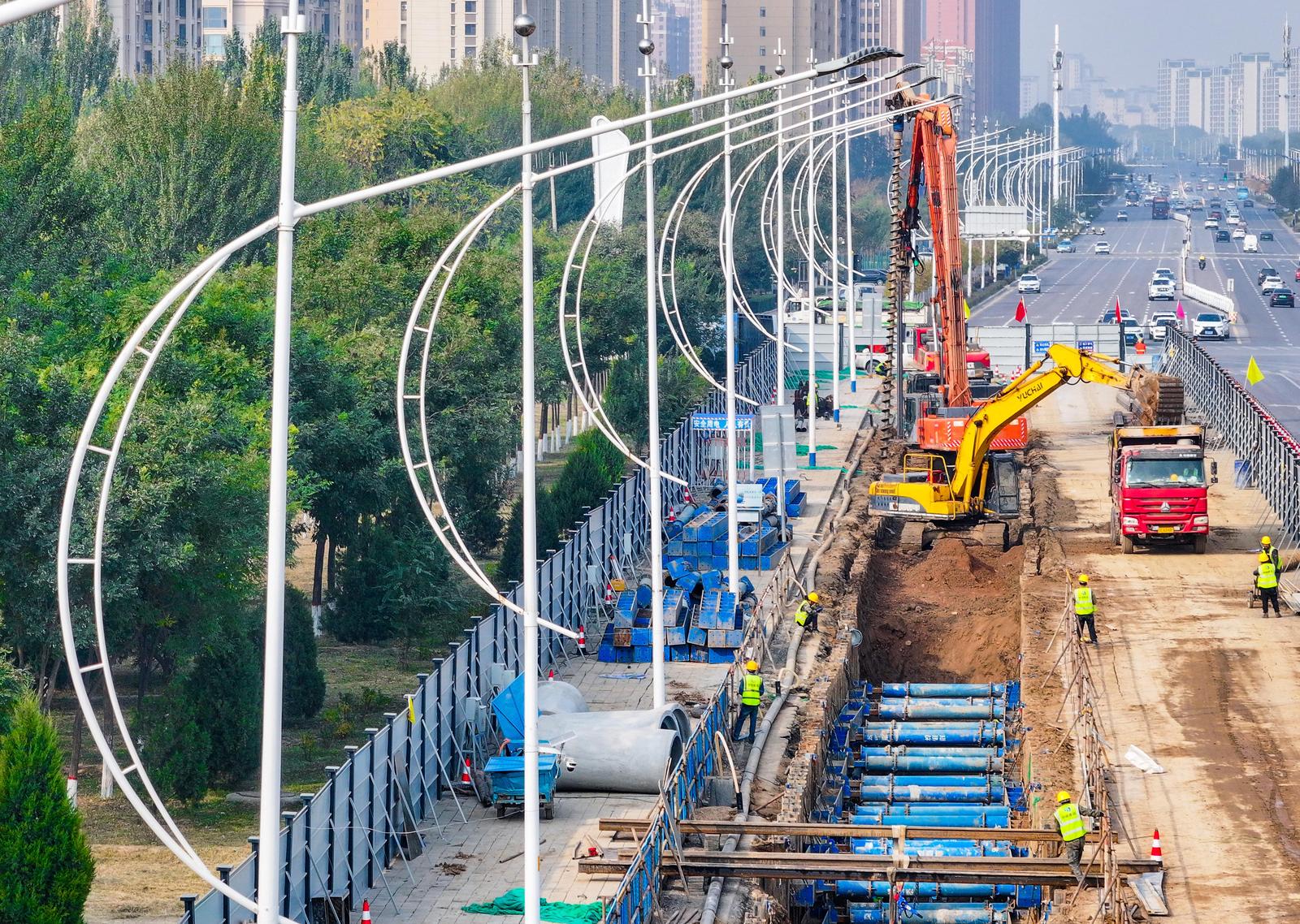 银川市兴庆区贺兰山路至大连路区域雨污分流工程一标段现场(10月25日摄)。此次改造工程是兴庆区系统性治理城市水环境、提升防灾减灾能力的关键举措,结合城市更新等重点工作,加快补齐城市排水防涝设施短板。 记者 马楠 摄