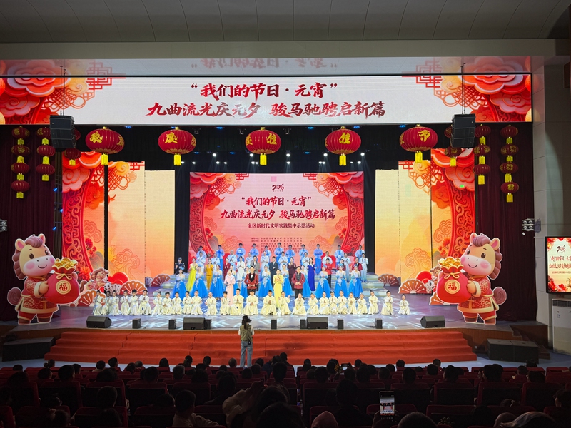 集中示范活动在歌舞《幸福汤圆暖万家》中拉开帷幕,现场发布“文明盐池 实践有礼”积分小程序。歌曲联唱、情景歌舞、盐池说书等节目轮番上演,展现非遗魅力。民乐齐奏《上春山》《战马奔腾》点燃气氛,歌舞《灯火里的中国》将晚会推向高潮。